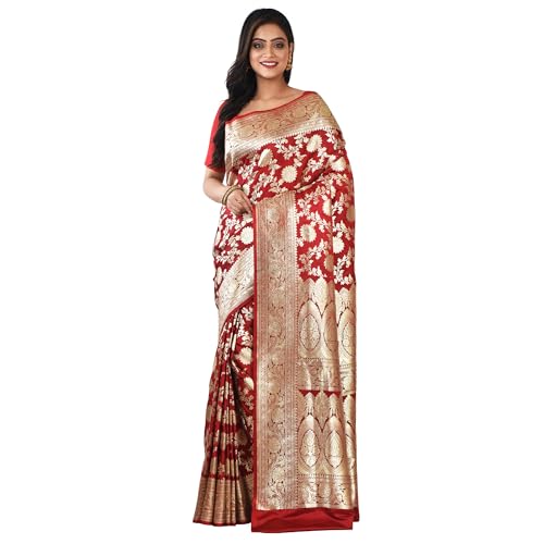 Aishani Collection Woven Jaal Work Pure Katan Silk Wedding Banarasi with bp (Maroon)