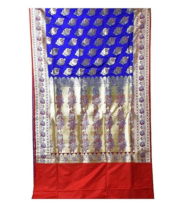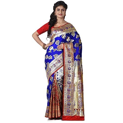 Aishani Collection Pure Katan Silk Wedding Banarasi Women’s Saree with bp (Blue, Red)