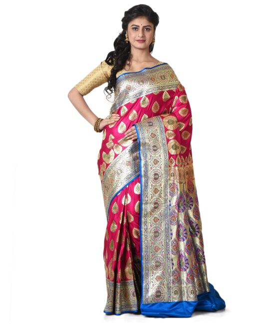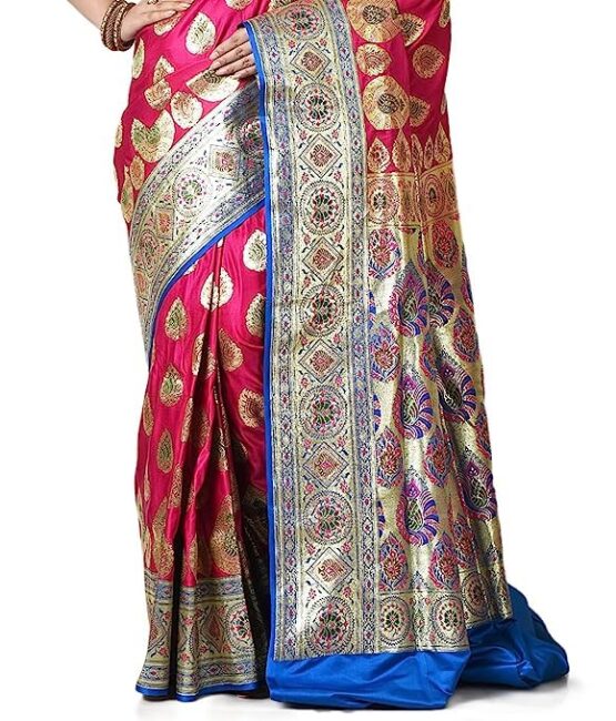 Aishani Collection Pure Katan Banarasi Silk Wedding Women’s Saree with bp (Pink,Blue)