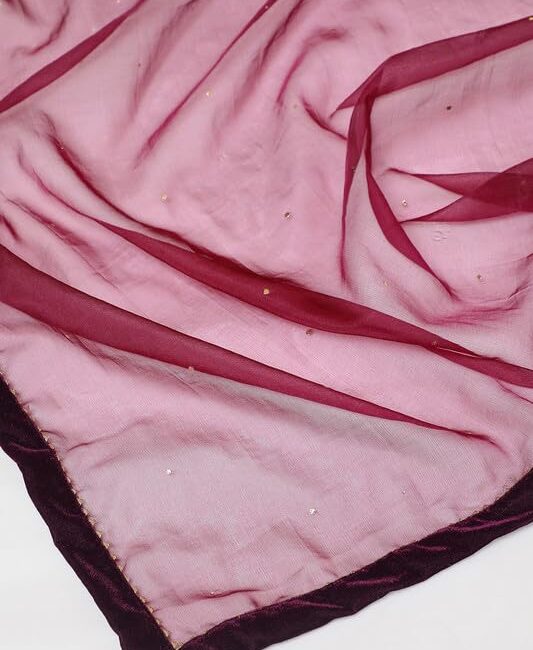 Soch Womens Wine Velvet Embroidered Suit Set With Beads And Stones