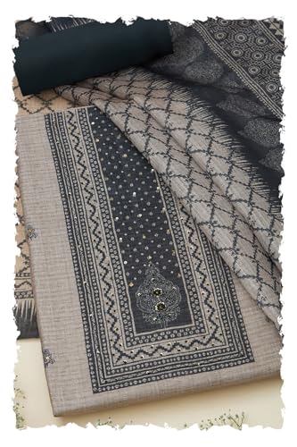 Soch Womens Beige Tussar Ethnic Motifs Unstitch Dress Material With Sequins