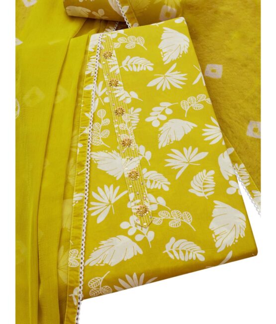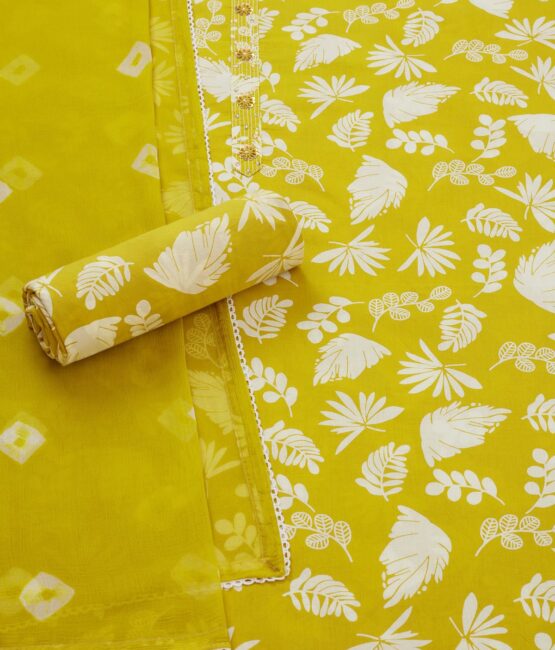 Soch Womens Light Green Cotton Botanical Print Unstitch Dress Material With Sequins