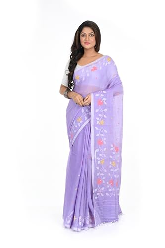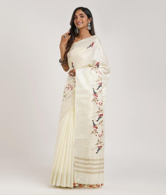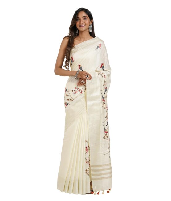 TEEJH Taarakini Off White Pure Silk Linen Saree with Blouse Piece