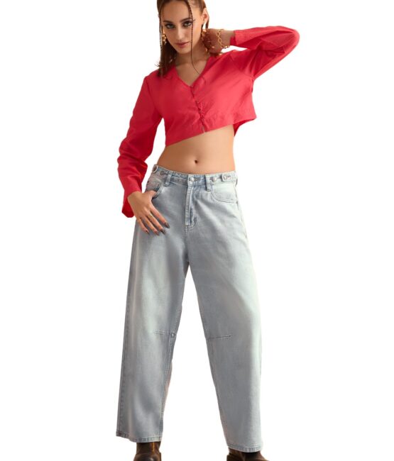 The Souled Store Barrel-Fit Denim: Arctic Women and Girls Buttoned Cotton Barrel Fit Jeans