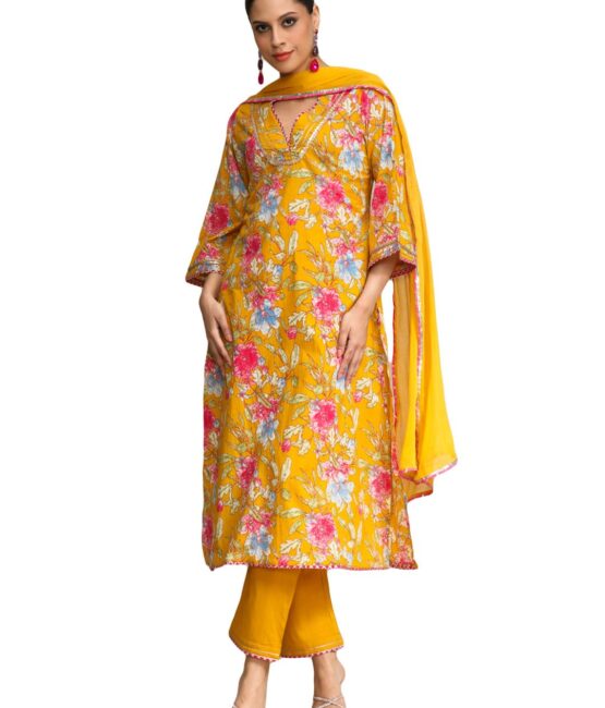 Varanga Floral Printed Boho Look Flared Sleeve Kurta With Trouser & Dupatta