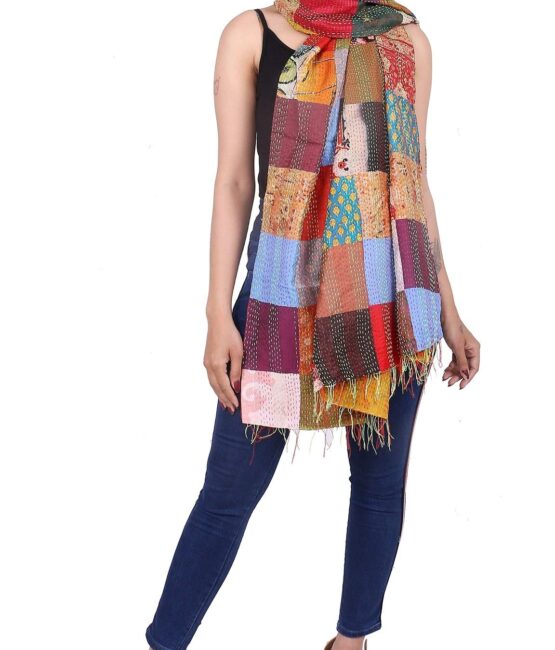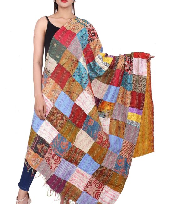 Texstylers Silk Multicolor Reversible Kantha Patchwork Assorted Dupatta For Girls And Women, Free Size