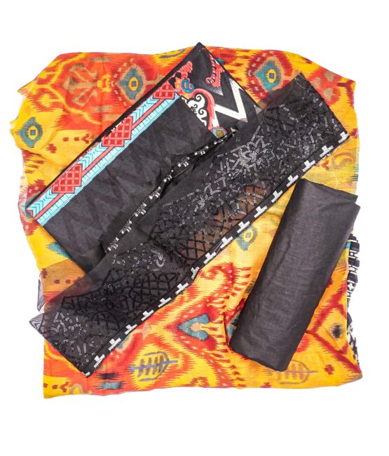 TREASURED THREADS Pakistani Hand Embroidered Pure Cotton Lawn Unstiched Suit Material With Patches