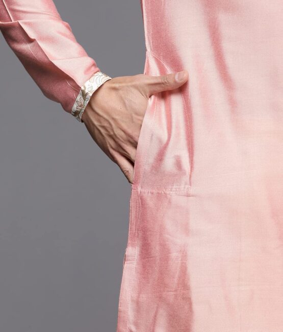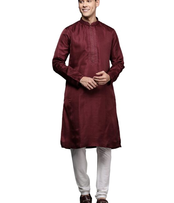 Manyavar Kurta Set for Men, Full Sleeves Mandarin Collar Ethnic Kurta Set For Diwali, Wedding, Party Satin