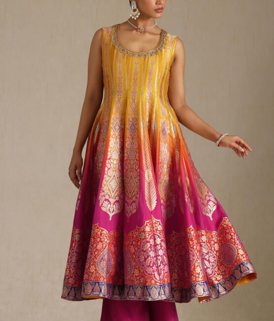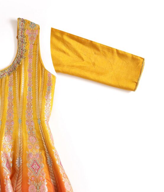 Soch Womens Mustard Botanical Print Chinon Angrakha Suit Set with Dupatta