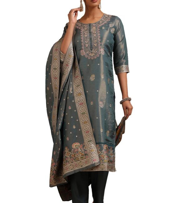 Soch Womens Teal Chanderi Embroidered Suit Set With Zari