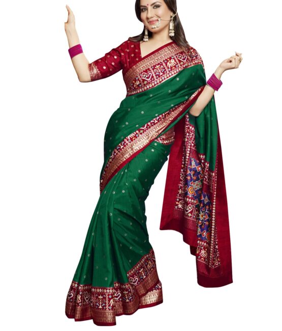 AKHILAM Women’s Banarasi silk Animal Print Saree With Unstitched Blouse Piece(Green_TRITH10010.)