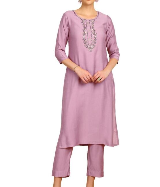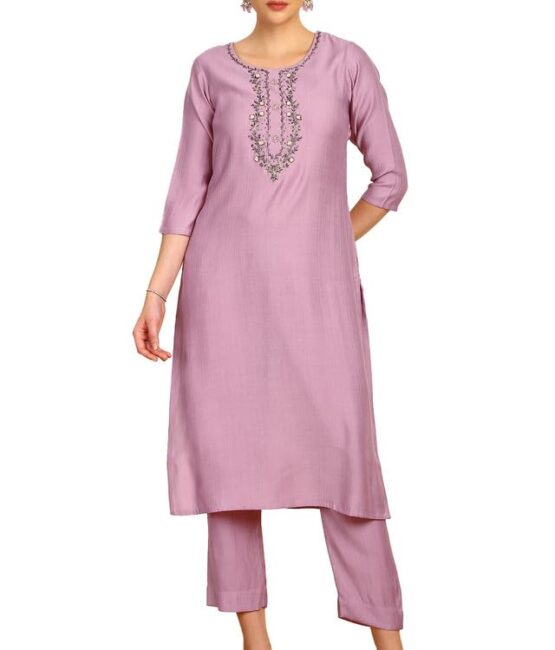 Soch Womens Onion Pink Viscose Blend Kurta Set with Cutdana