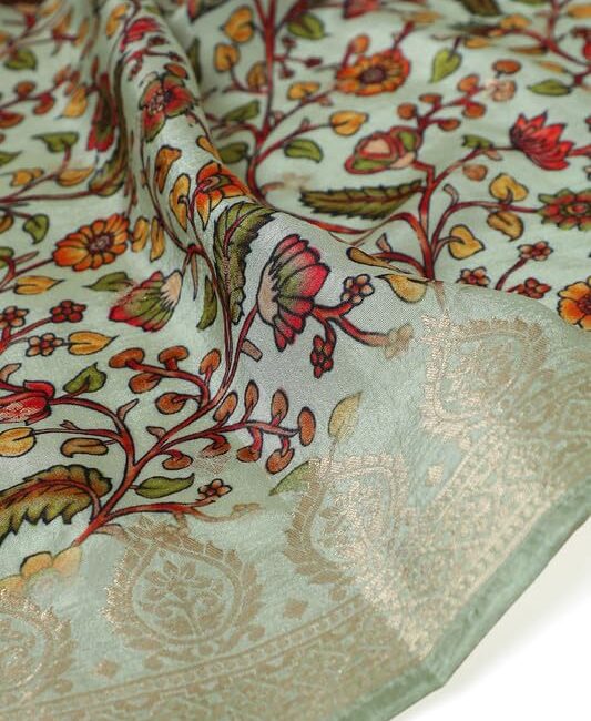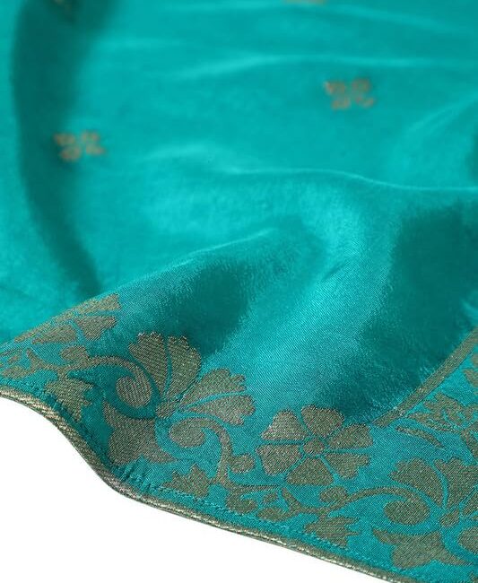 Soch Womens Sap Green Silk Blend Zari Embroidered Suit Set with Contrast Dupatta