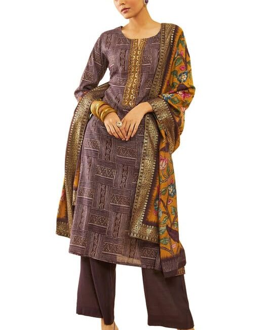 Soch Womens Purple Muslin Abstract Print Suit Set with Floral Print Dupatta(ETL-EWA3CD20253A)