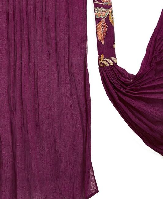 Soch Womens Wine Embroidered Chinon Sharara Suit with Dupatta