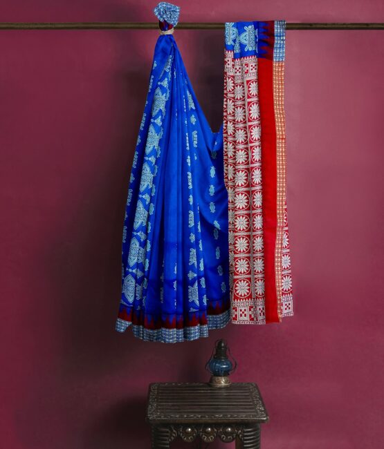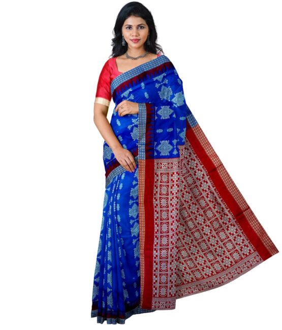 Silk Odisha Sambalpuri Women’straditionl Handloom Saree Dark Blue And Red Color With Blouse Piece (Bb D Blue)