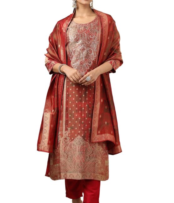 Soch Women’s Dola Silk Salwar Suit Set (EWS5CD21718_Maroon_M)