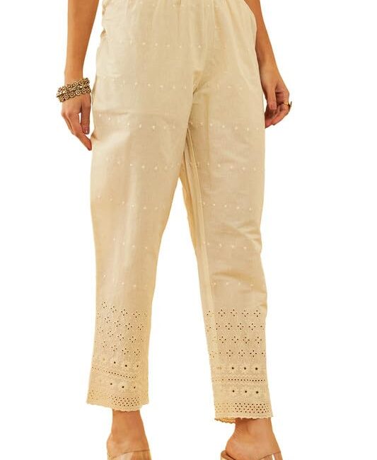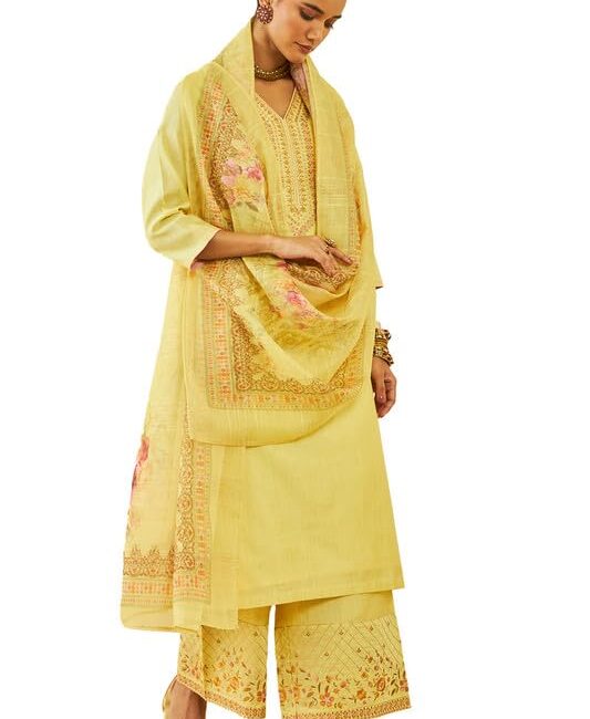 Soch Womens Light Yellow Silk Blend Floral Embroidered Palazzo Suit Set with Dupatta
