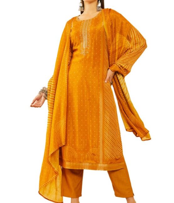 Soch Womens Mustard Brocade Bandhani Printed Suit Set with Mirror Work