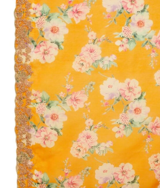 Soch Womens Mustard Botanical Print Chinon Angrakha Suit Set with Dupatta