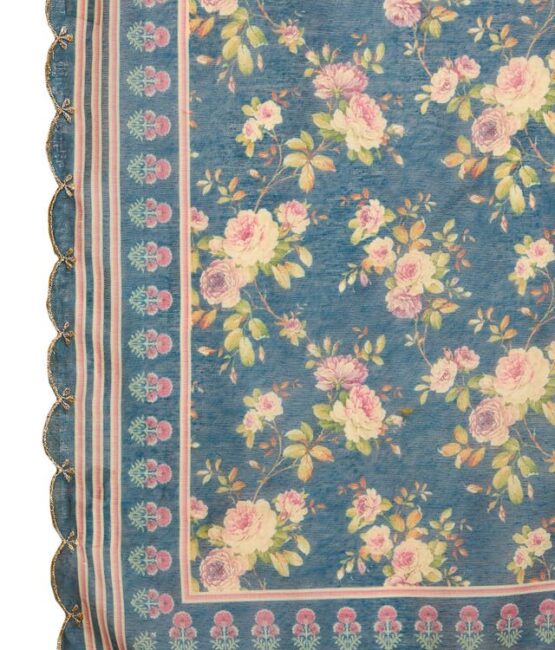 Soch Womens Navy Blue Chanderi Floral Printed Suit Set with Gotta Patti
