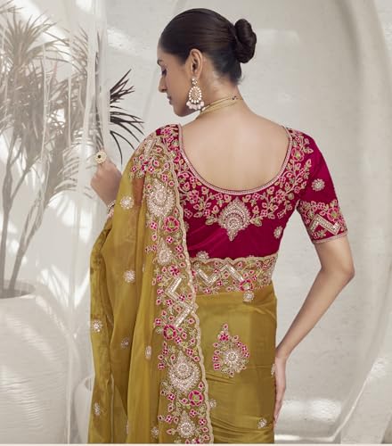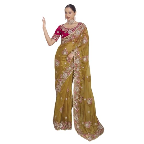 Suha Women Poly Silk Saree | Women’s Traditional Ethnic Saree With Attach Unstitch Blouse Piece | Occasion and Parties Wear Sarees for Womens-Rust(SA2107)
