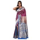 - **Material**: Made from premium **pure Katan silk**, known for its smooth texture and durability. – **Weaving Technique** **Banarasi weaving techniques**. – **Design**: **Minakari work** features intricate floral or geometric patterns woven with vibrant colored threads. – **Border & Pallu**: Rich, zari-decorated borders and pallu, showcasing opulent craftsmanship. – **Blouse Piece**: Comes with a matching **unstitched blouse piece**, allowing for personalized tailoring. – **Occasion**: Ideal for weddings, festive events, or any special occasions. – **Lightweight and Comfortable**: Despite its rich look, it’s lightweight and easy to drape.
