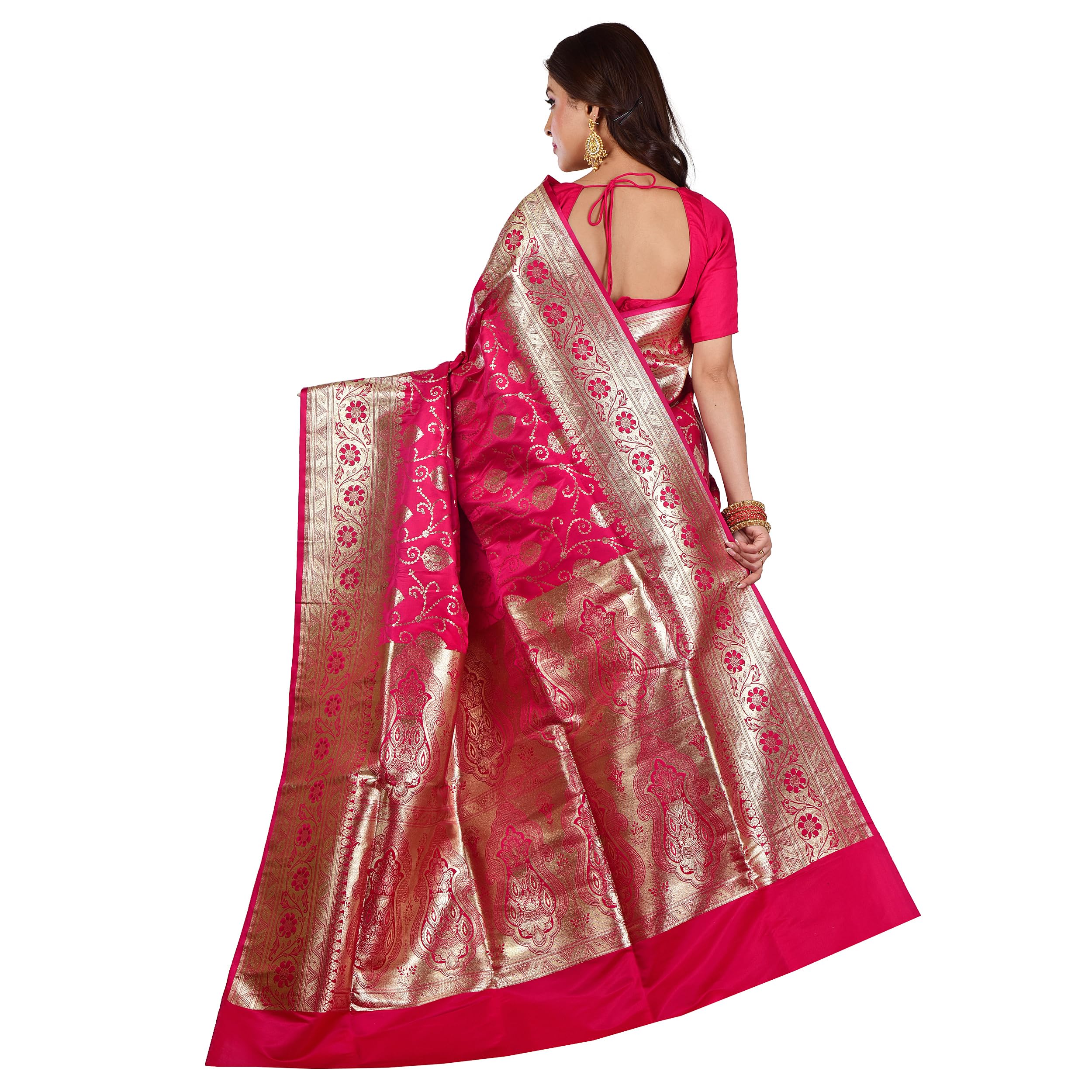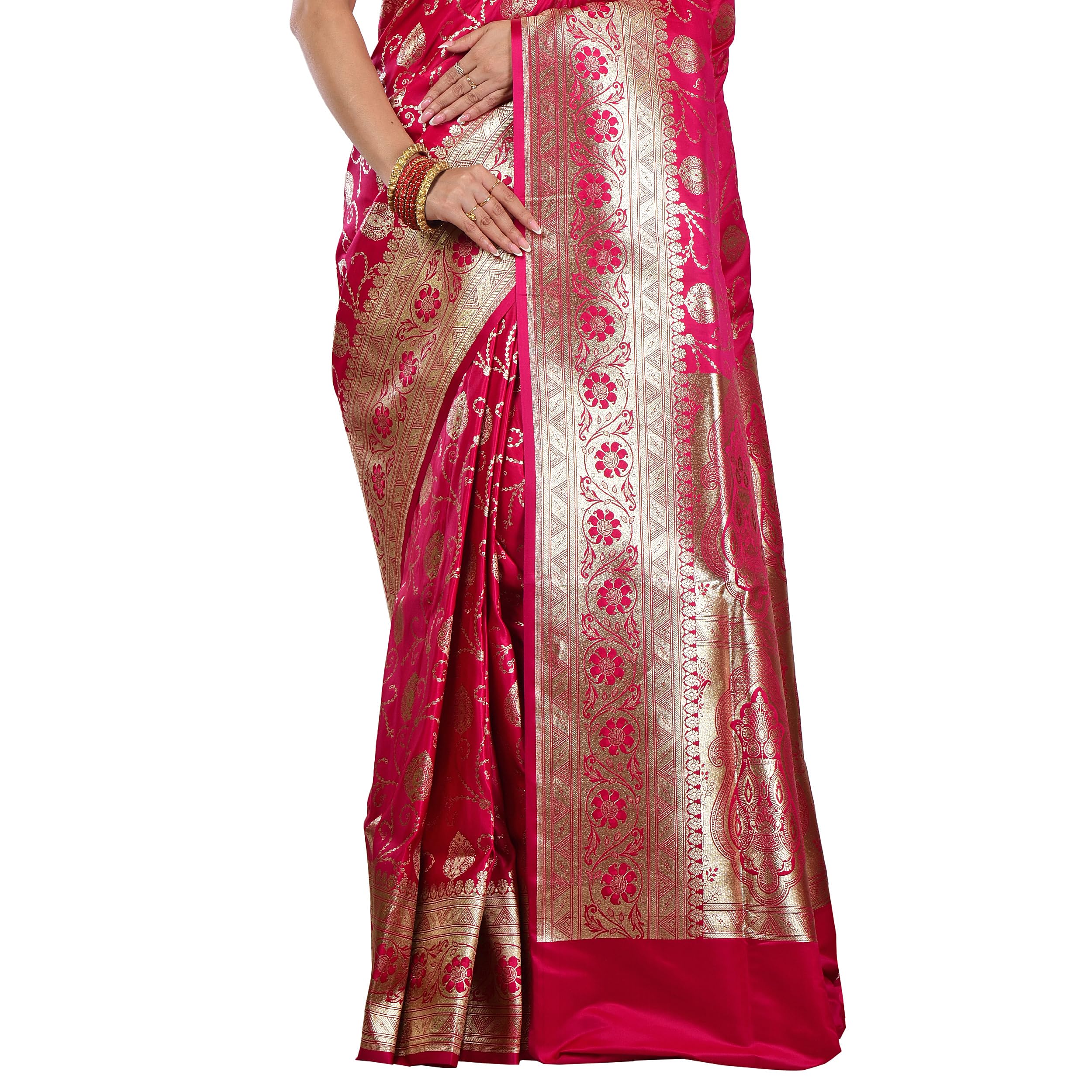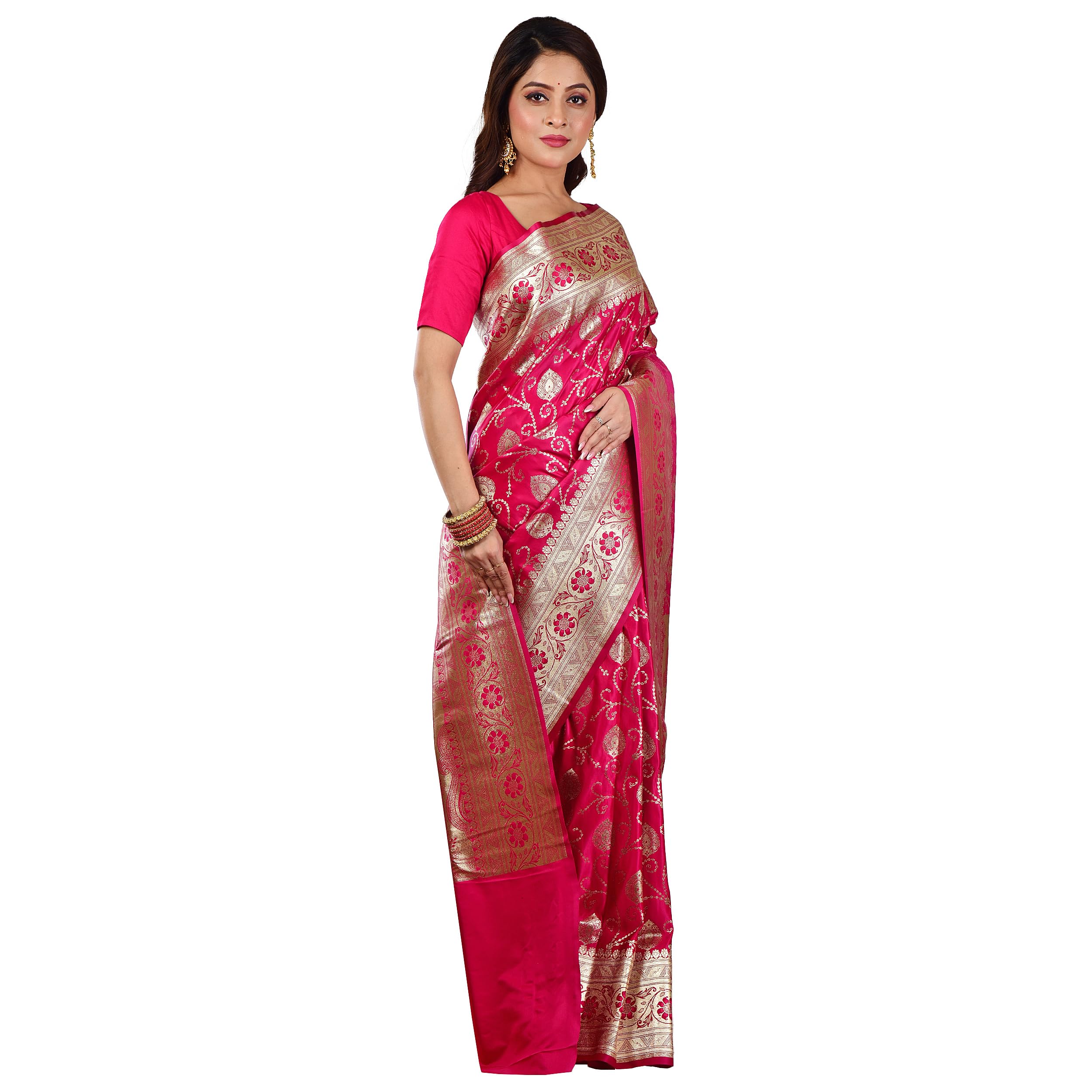 - Weaving Technique: Handwoven on a jacquard loom by skilled Banarasi weavers, with each saree taking several weeks to complete due to the intricate and laborious process