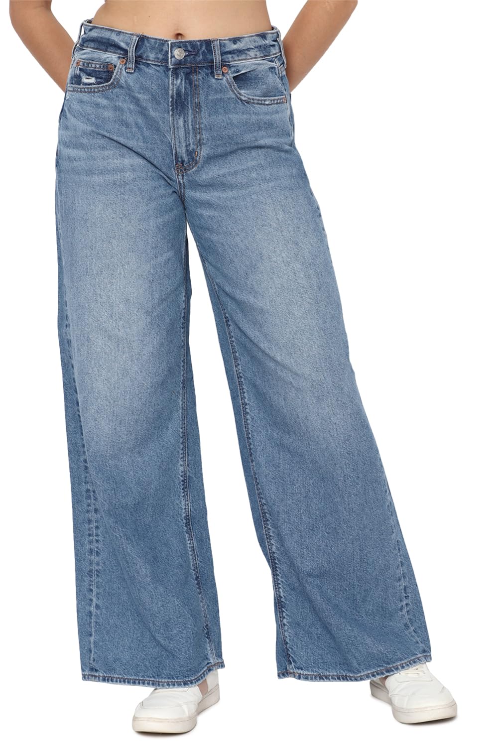 A super high rise & exaggerated ultra-wide leg for a fashion-forward fit.
