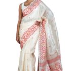 • Luxurious Bishnupuri Katan Silk: Crafted from soft Bishnupuri Katan Silk, offering a smooth texture and graceful drape, ideal for elegant occasions.