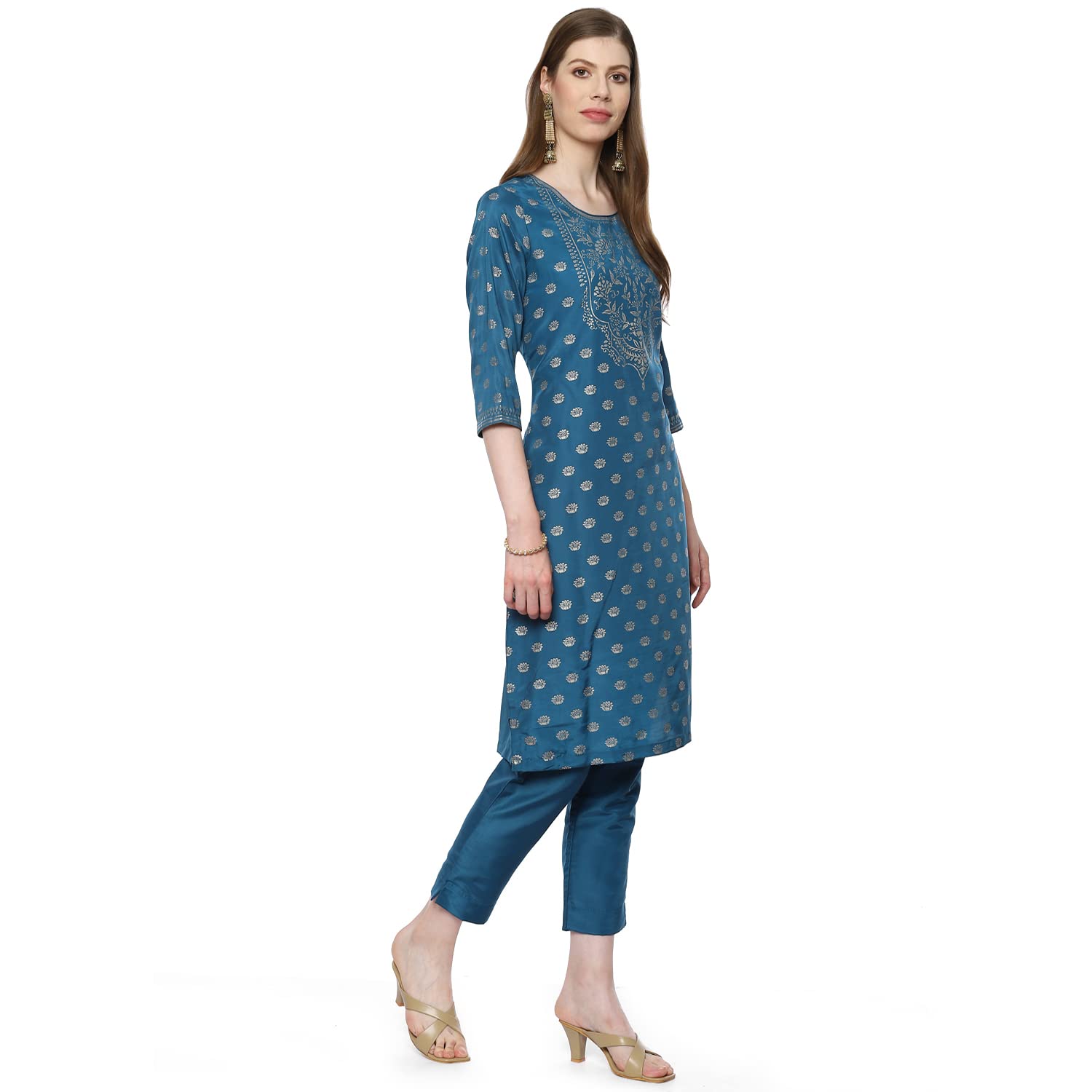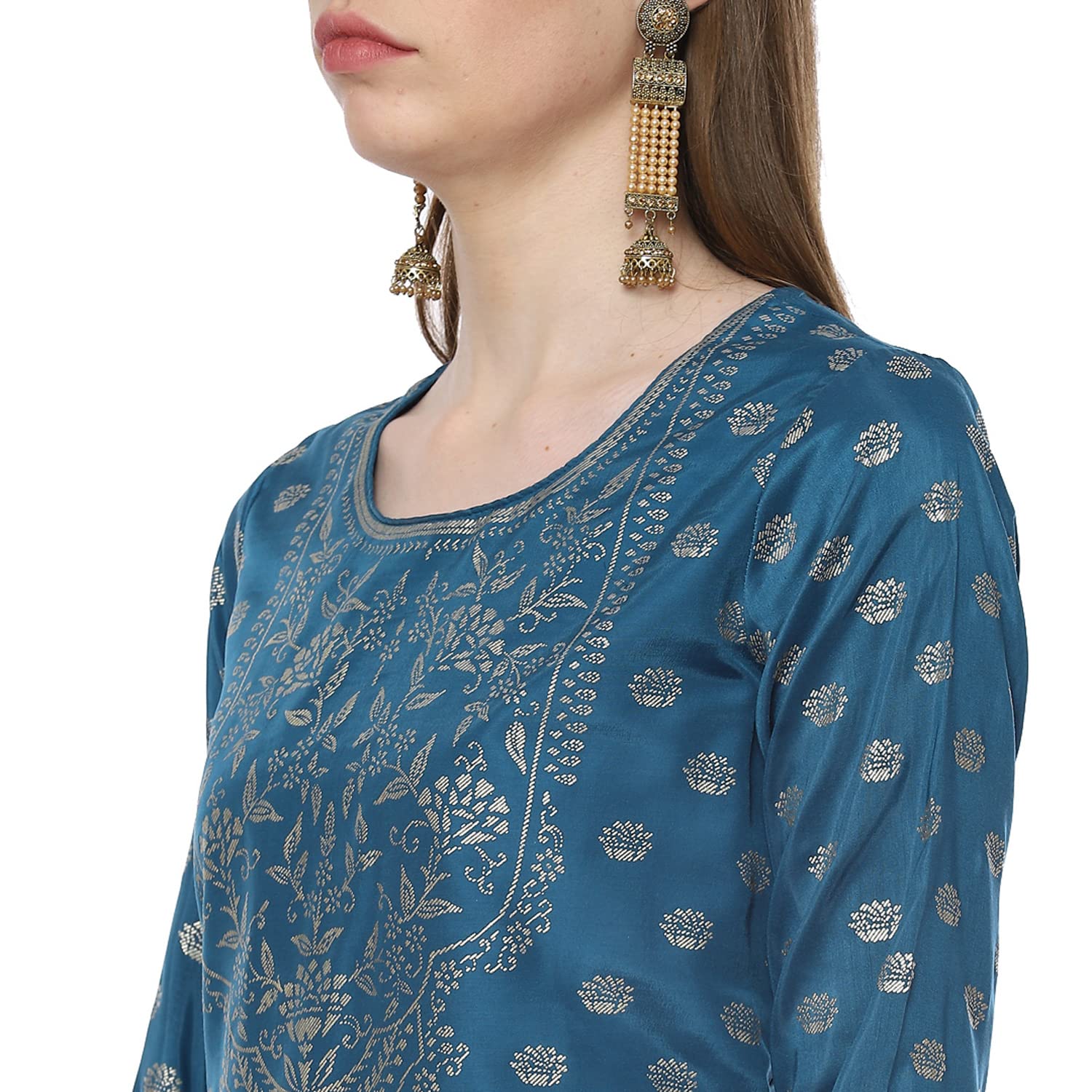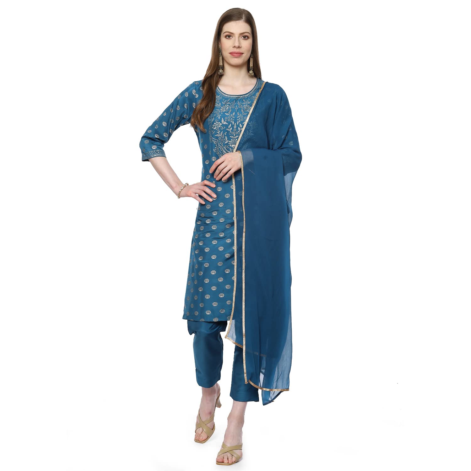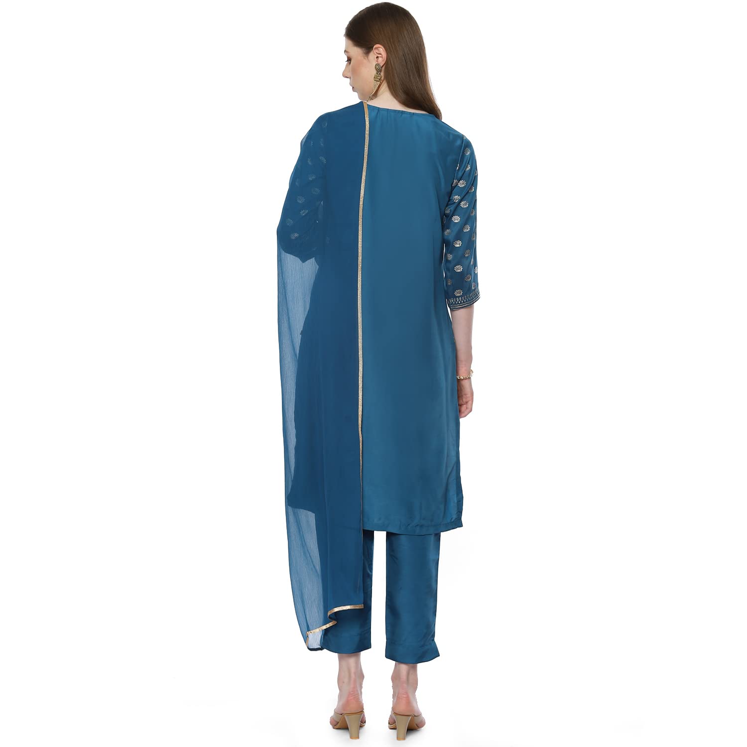 BIBA Women’s Ethnic Teal Polyester Suit Set