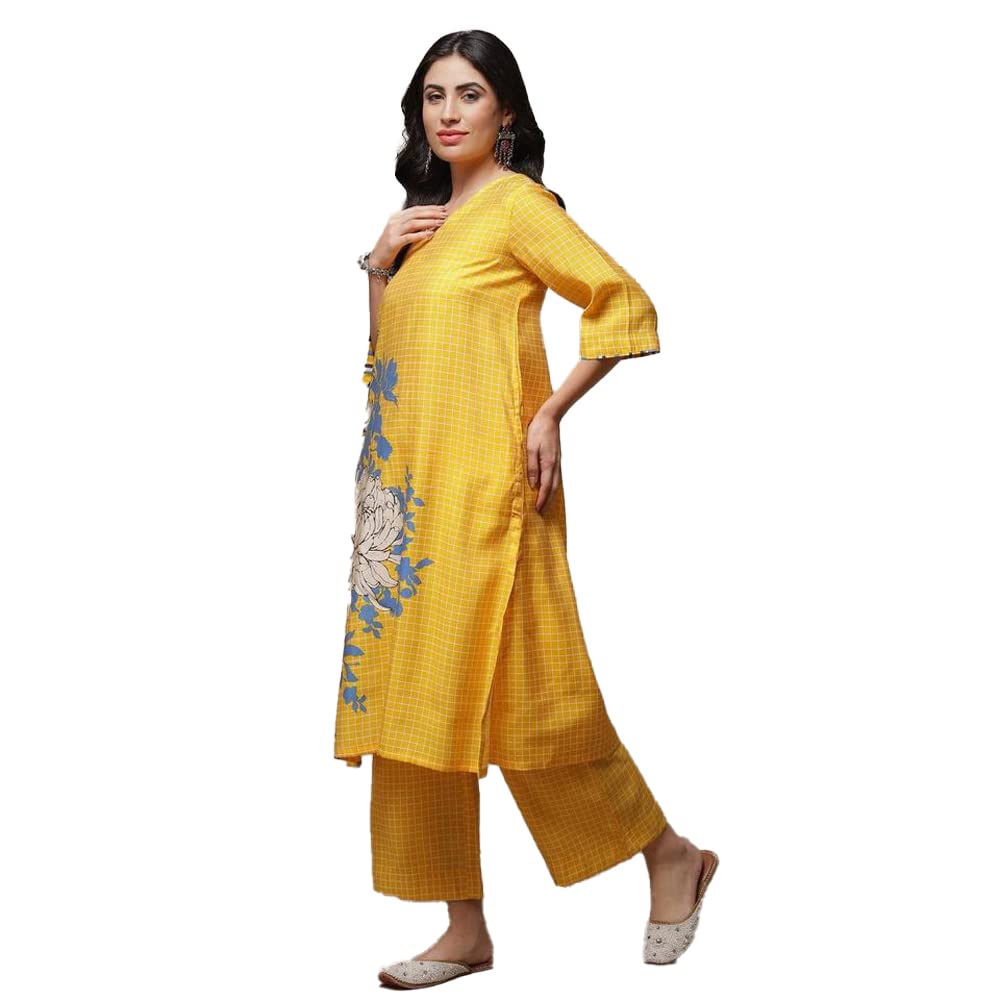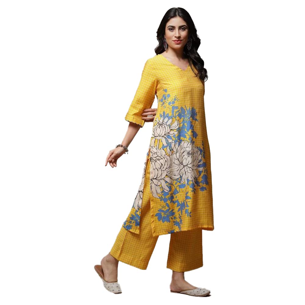 Biba Women’s Yellow Printed Poly Viscose Suit Set