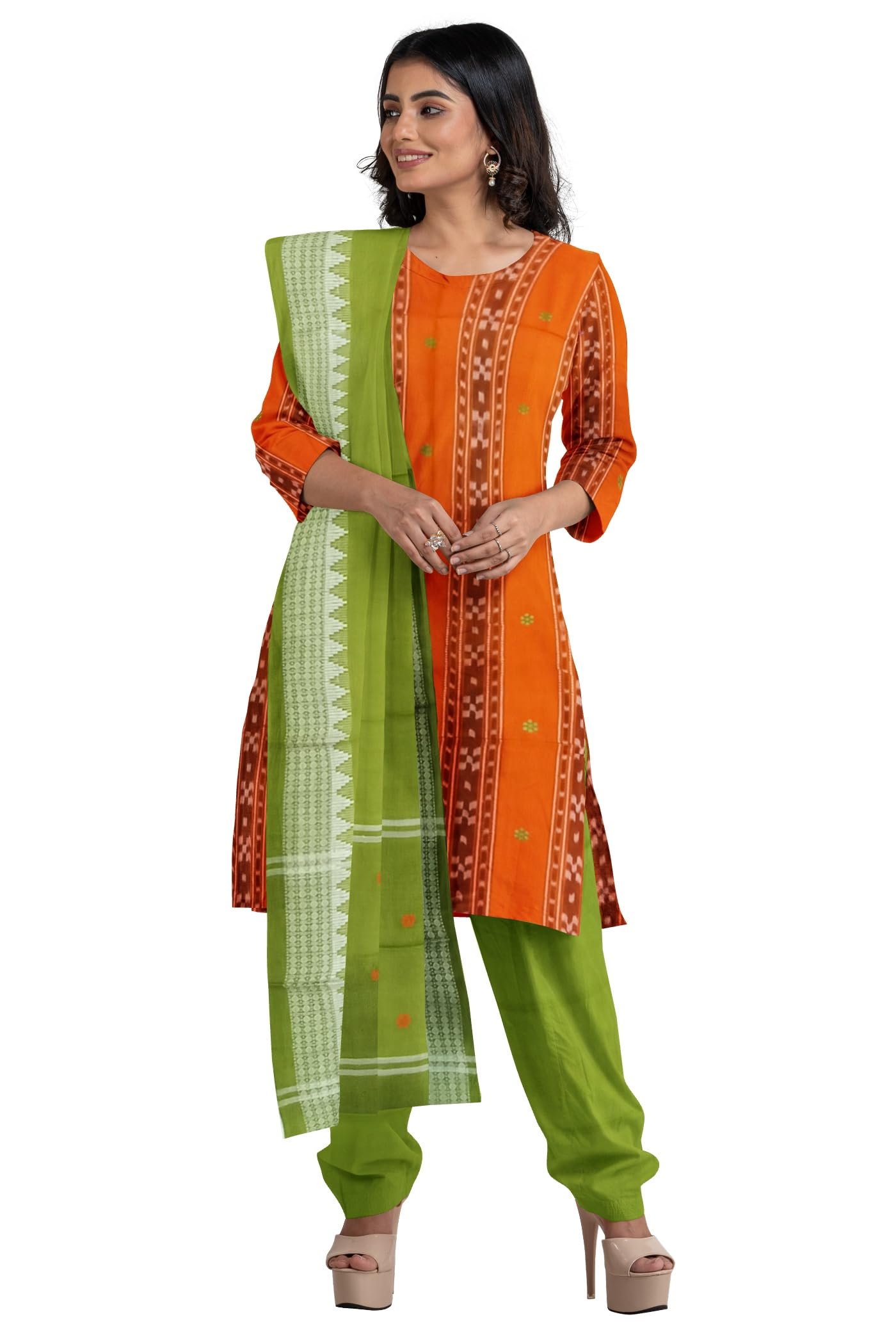 - Package Contents: 1 Top, 1 Bottom & 1 Dupatta,Slight irregularity in design and colour is the sign of a handwoven piece