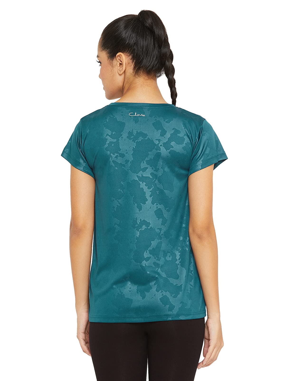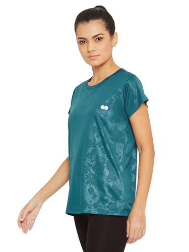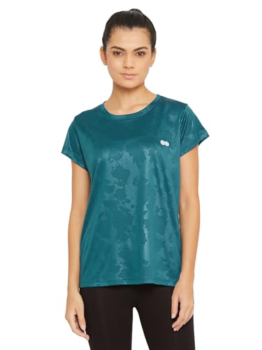 Clovia Women’s Polyester Activewear Short Sleeve Sports T-Shirt (AT0124G08_Blue_XL)