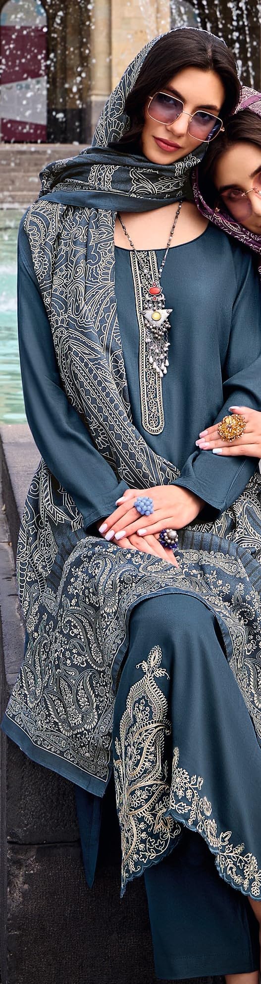 - Unstitch Top: 100% Pure Viscose Staple Pashmina Solid fabric fo with Elegant Embroidery and Extra Neckline Embroidery Lace (2.5 m)