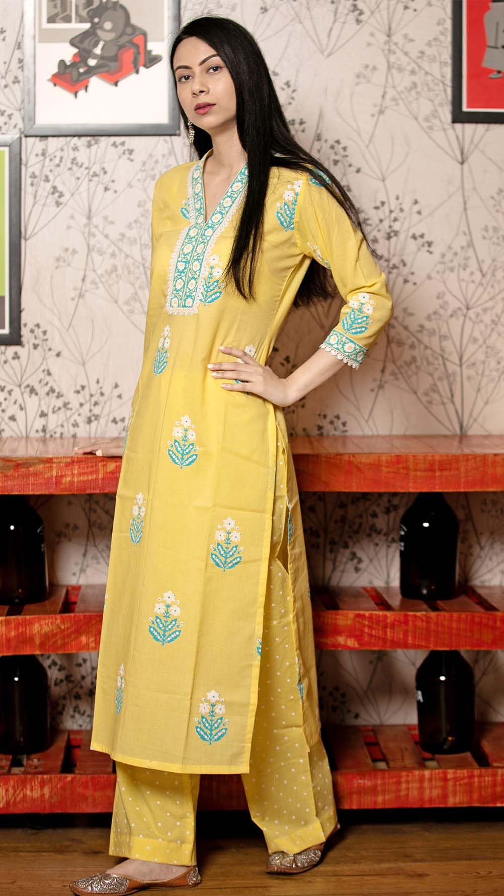 - Kurta and Bottom Fabric: Cotton Blend || Kurta Set Color :- Mustard