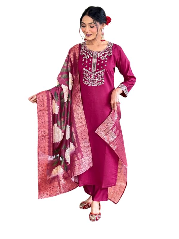 - Set Components: Includes a kurta, matching pants, and a dupatta for a complete look.