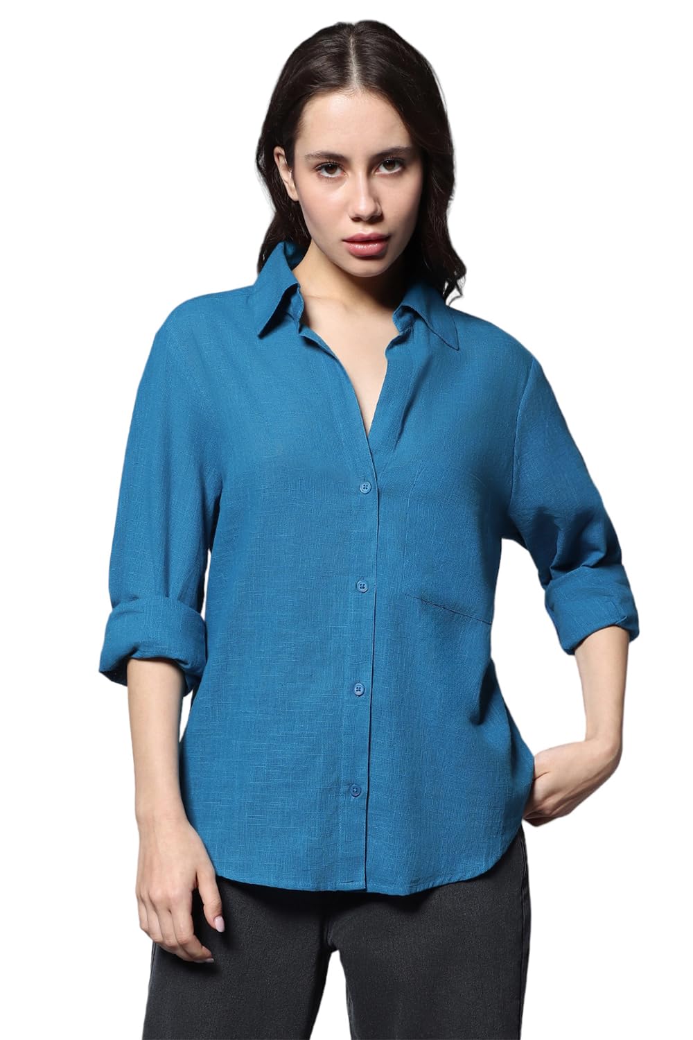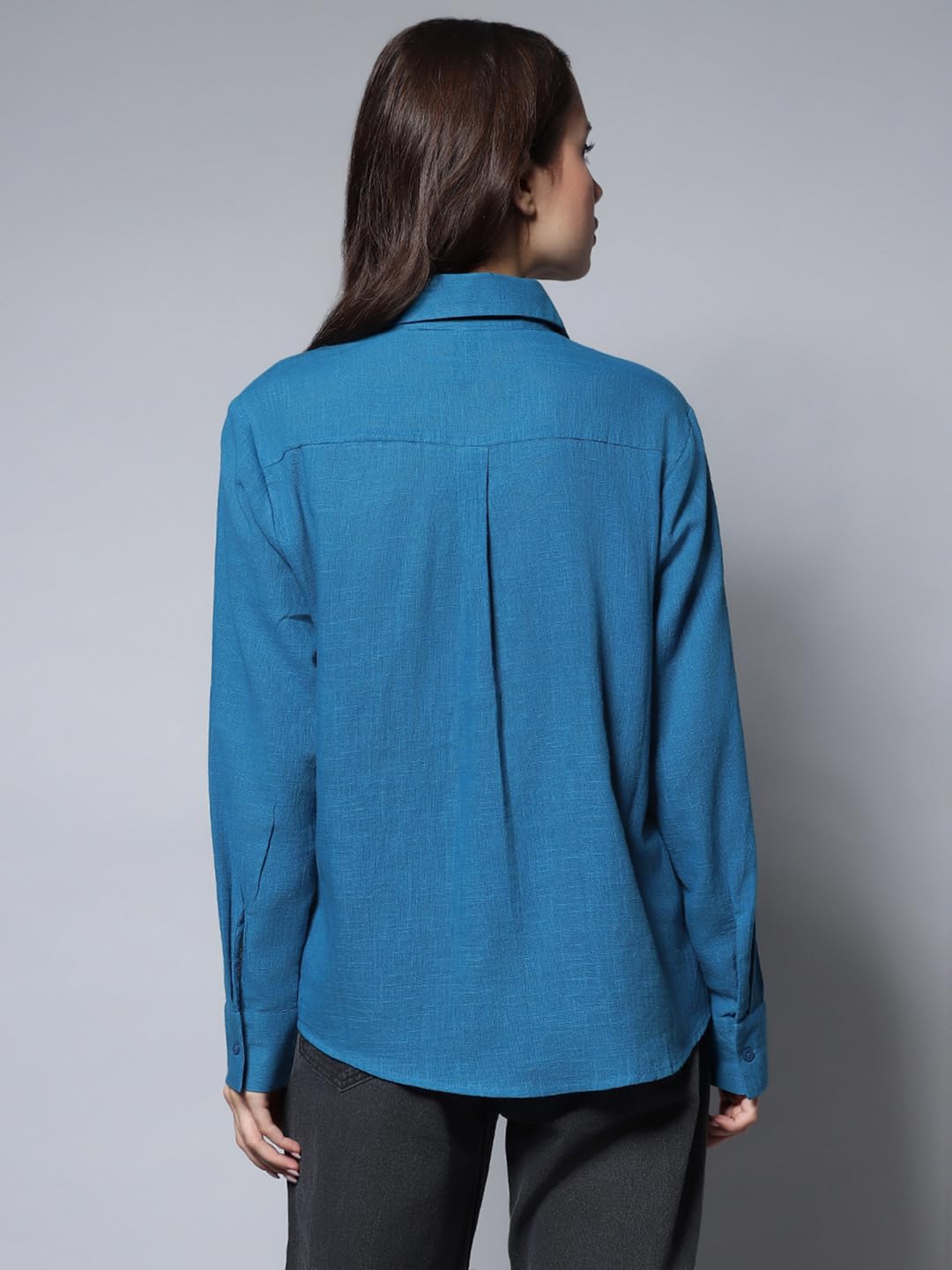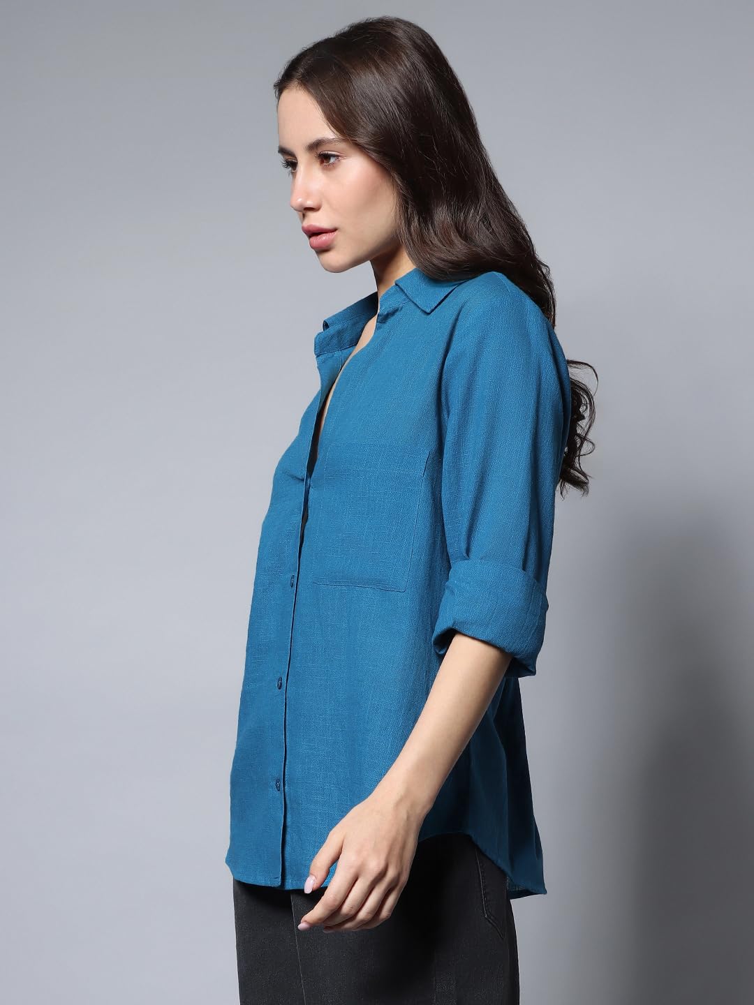 HIGH STAR Women's Cotton Oversized Fit Shirt (HSWSHW23509_BL_Blue, Small