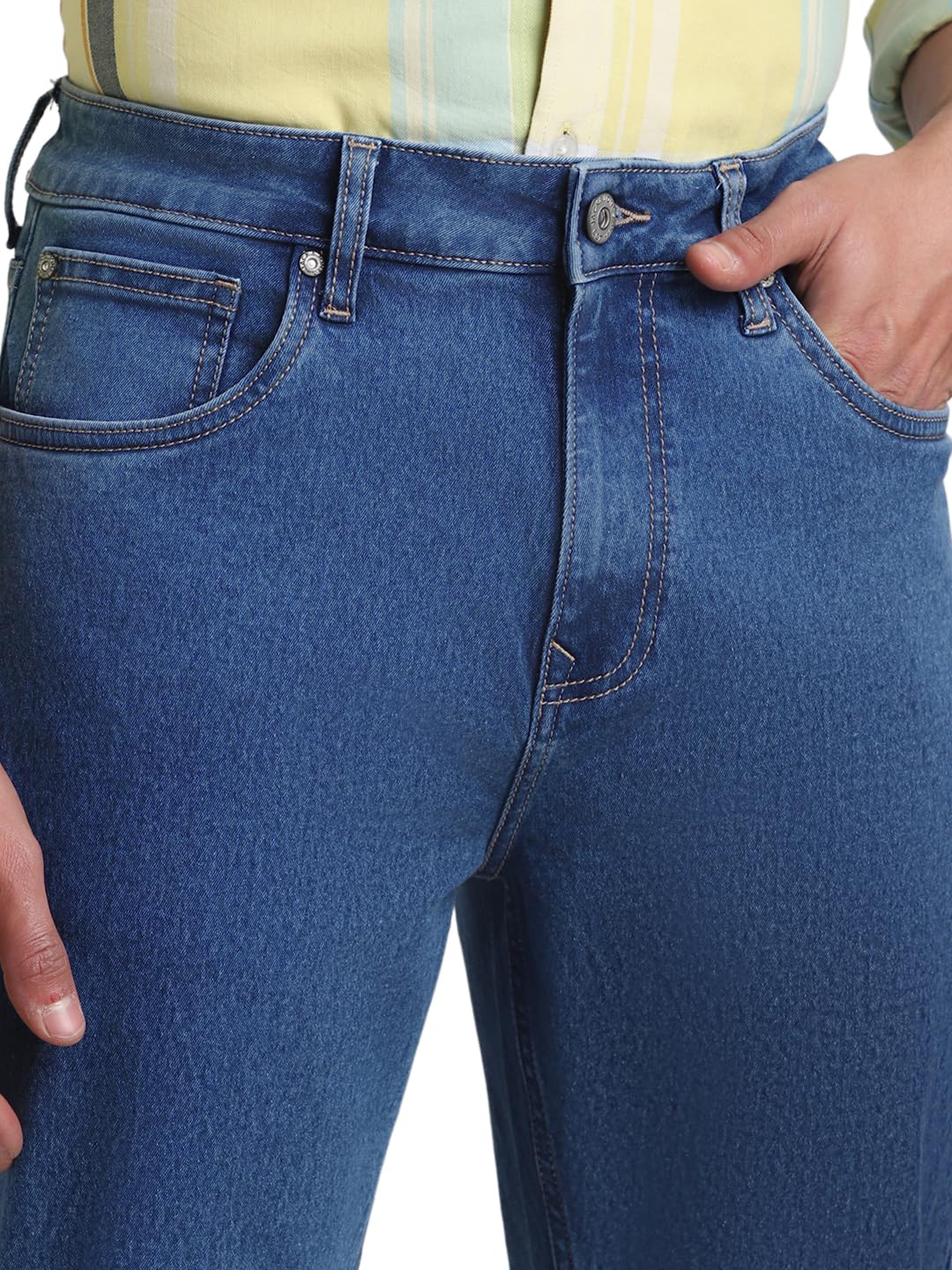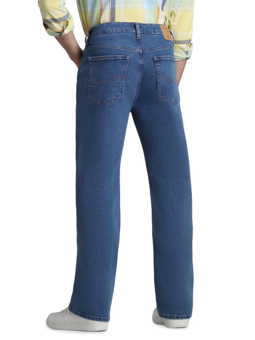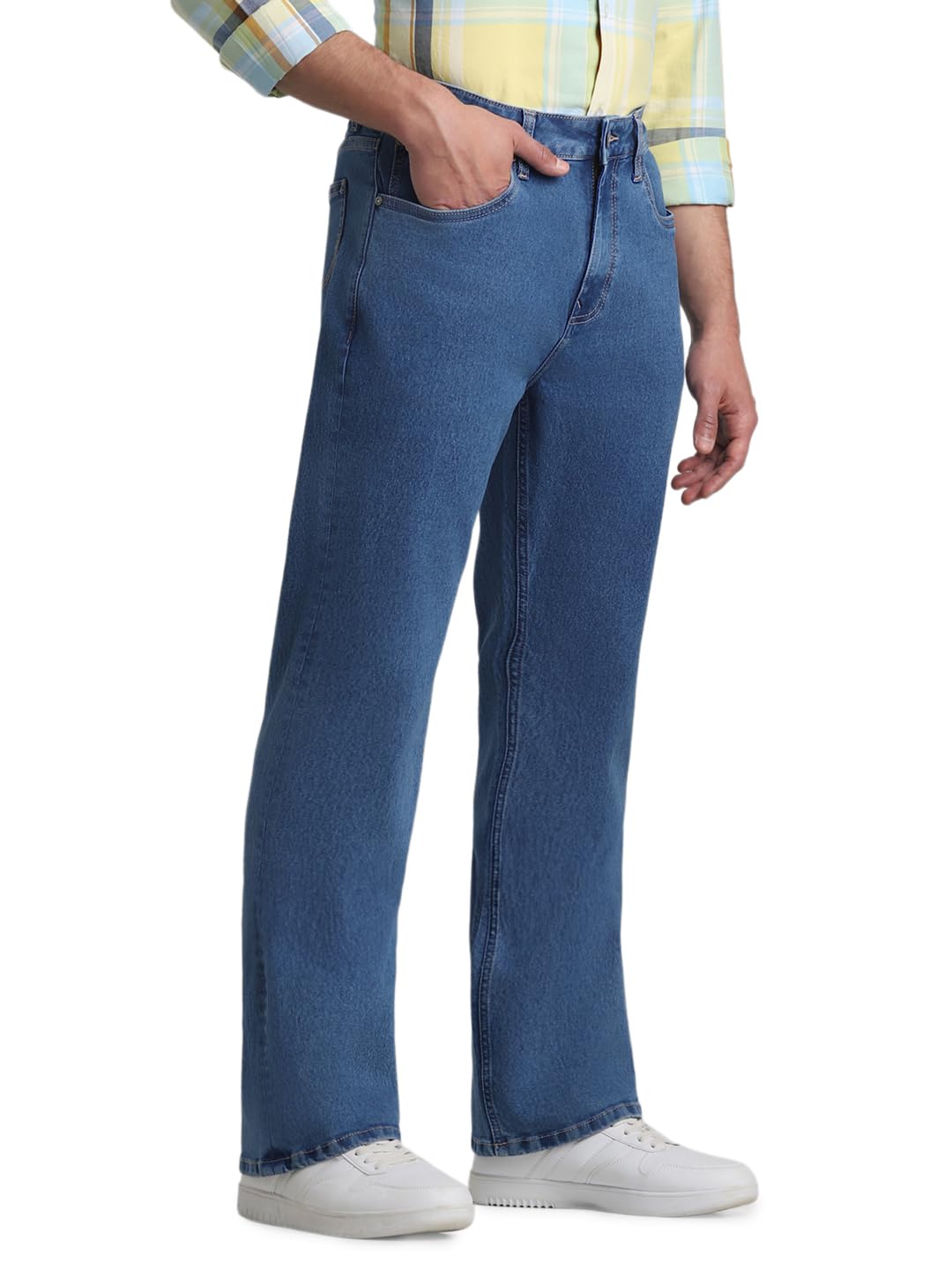 Jack & Jones Men Solid Cotton Blend Bootcut High Rise Stretchable Blue Jeans