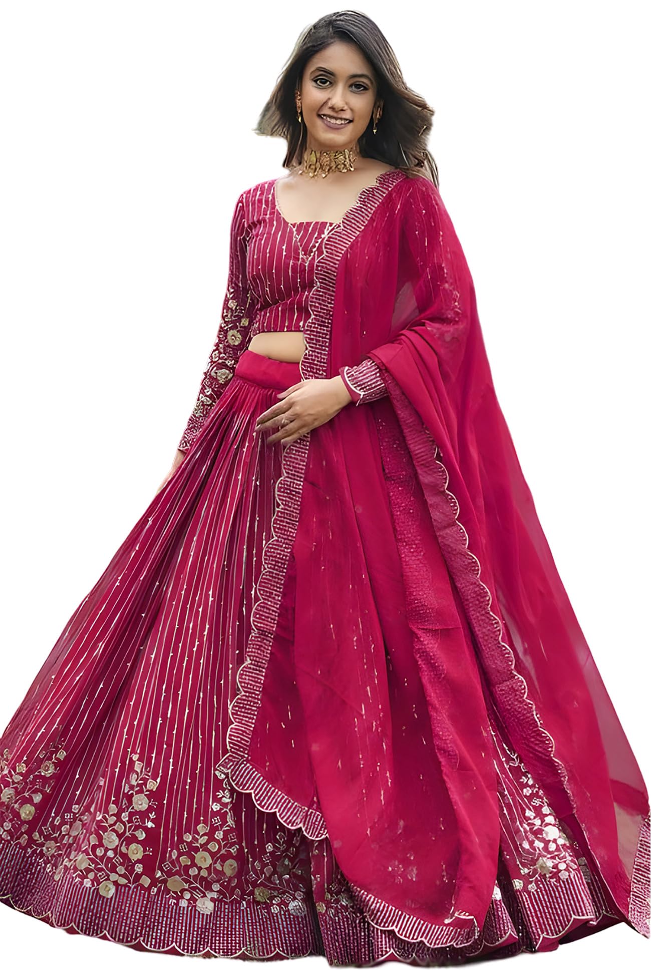 - Lehenga Choli Set Fabric:- Georgette || Inner :- Crepe Silk || Work :- Sequence Embroidery With Lace Border.