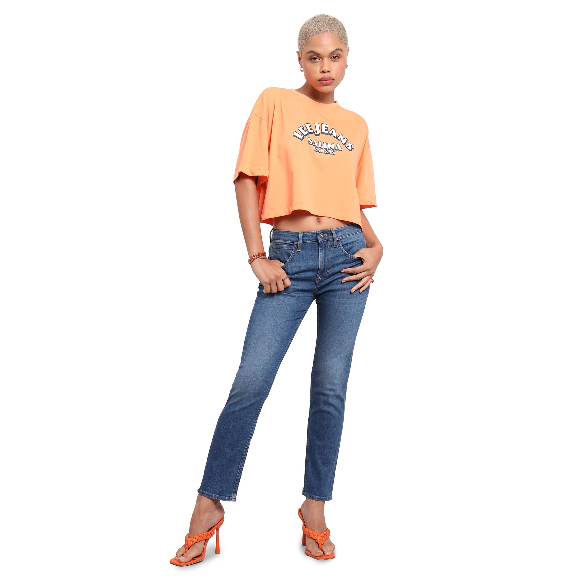 These Lee jeans are made from 98% cotton and 2% spandex, and are designed to give you a comfortable fit and a soft hand feel. The mid waist and slim fit are perfect for a casual day out. Add on a denim jacket for a trendy outfit.