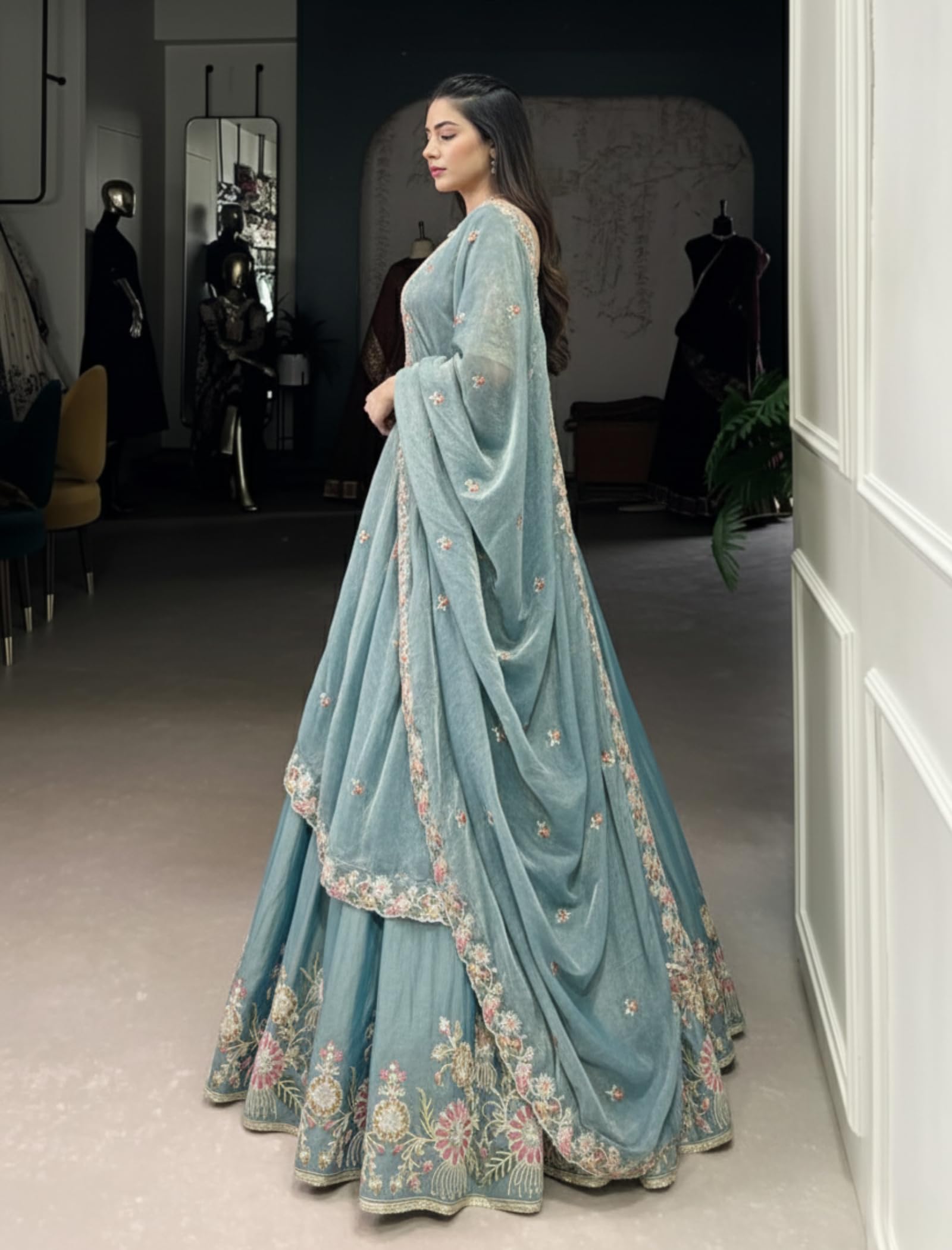 - Dupatta, Dupatta Fabric : Zari Shimmer , Dupatta Work : Sequins and Thread Embroidery Work , Dupatta Length : 2.40 Meter