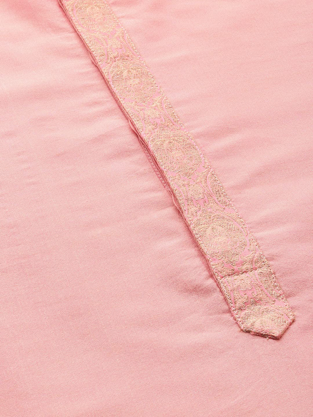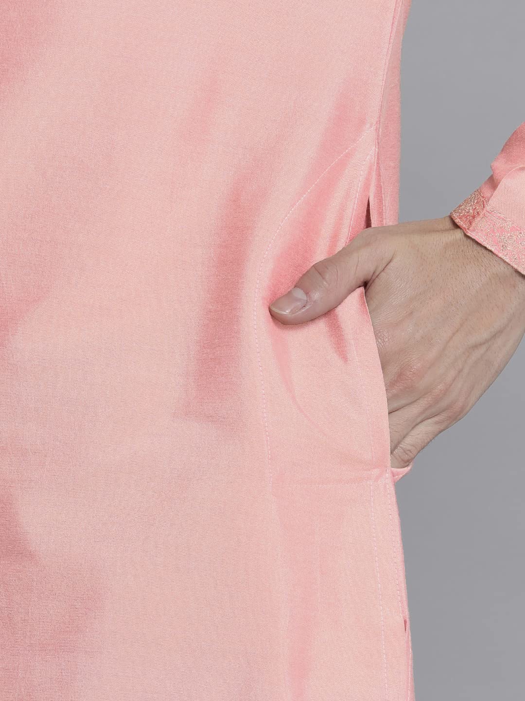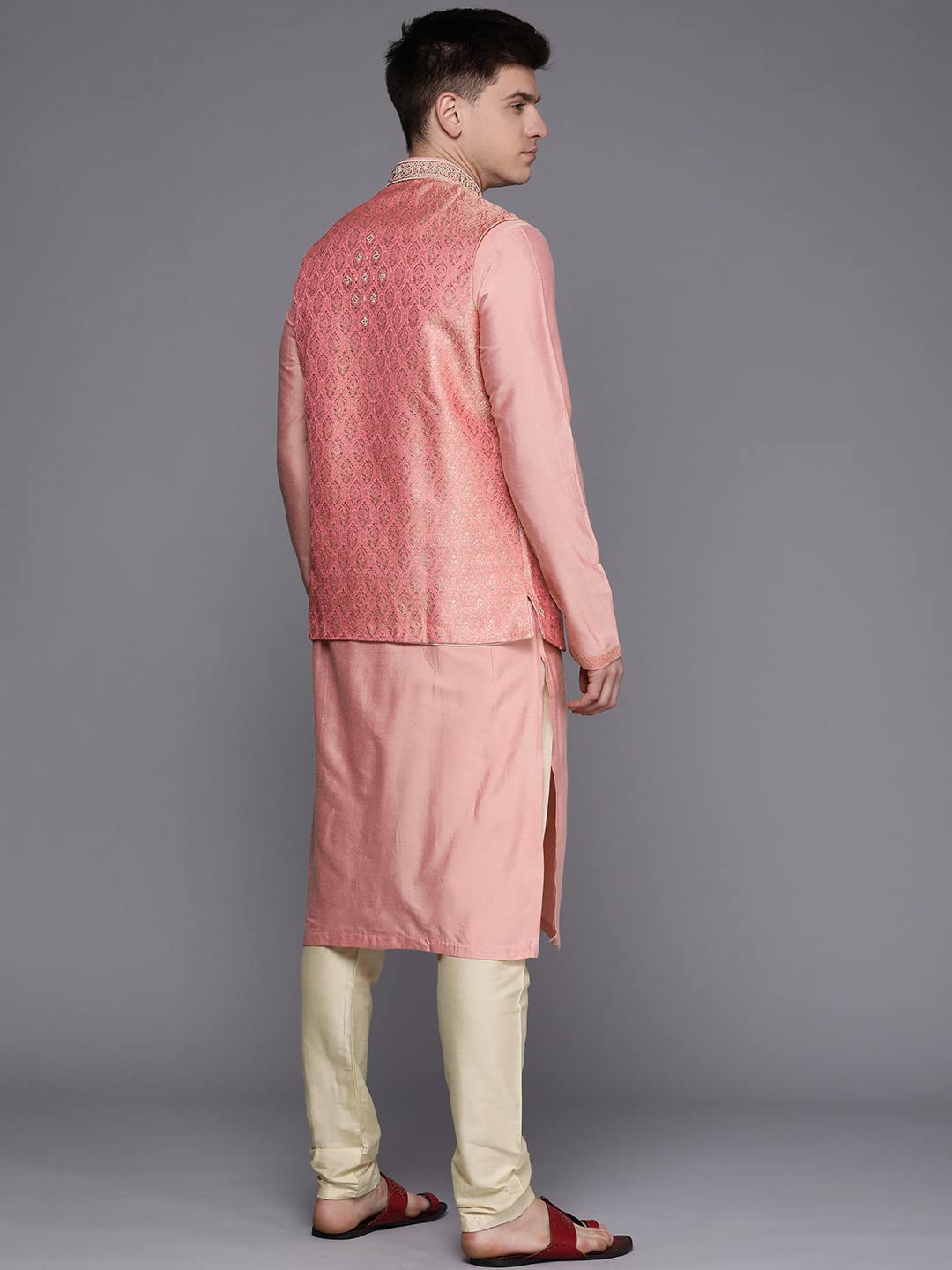 Manyavar BLENDED VISCOSE PEACH All over self design Full Sleeve Jacket Set