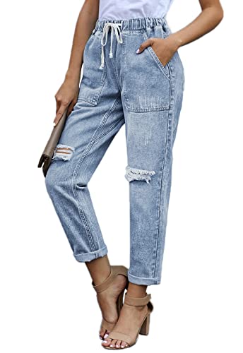 - ❤Design:This casual denim distressed jean is designed withdistressed and destoryed,which make it more casual ,simple and trendy.The high stretch jeanswith elastic wasit,will accommodate various body type ,even curves and pluu size.And the sides pockets is not only great decoration,but also Convenient for carrying Phone, keys.