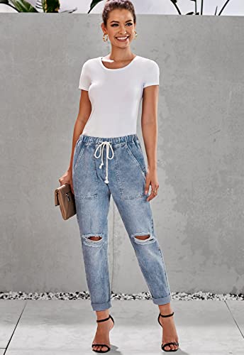 - ❤Occasion:This casual denim jeans is great choice daily wear or as the denim joggers jeans.It is easy to paired with a t-shirt and sneakers for joggering .A blouse or bodysuit or tuck longer, flowy tops into the waistband is also the perfect matching for going out or date night, top the look off with your favorite boots, flats,heels,suitable for go to work or daily.Perfect for all seasons.