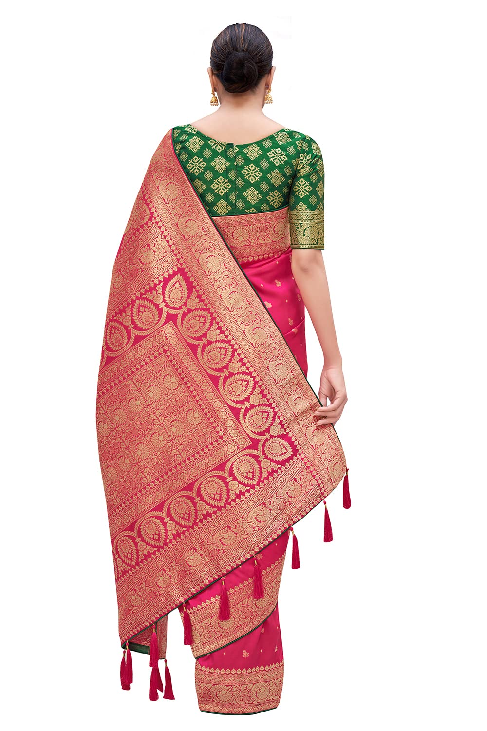Monjolika Fashion Women's Woven Silk Saree With Blouse Piece (4504_Pink)