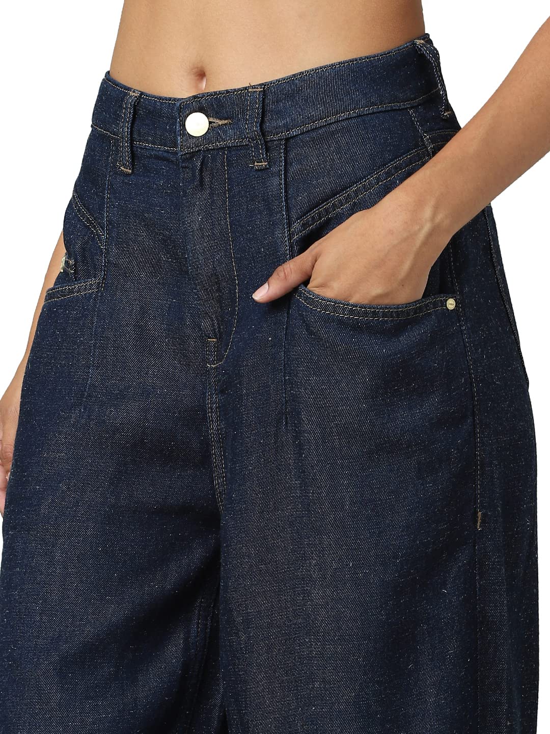 Loose fit 5-pocket jeans in raw cotton denim with a high waist, zip fly and button and wide legs.