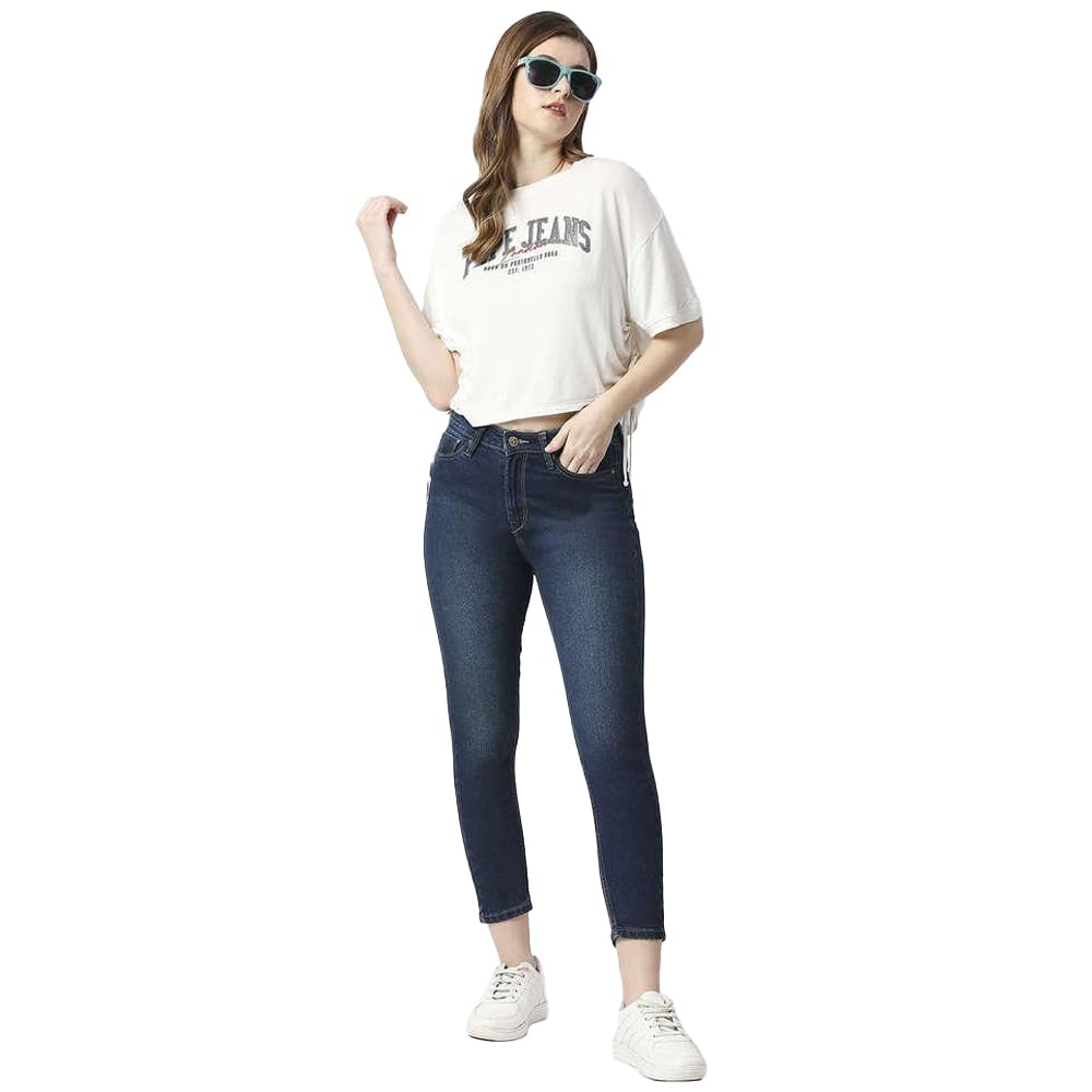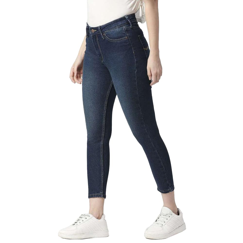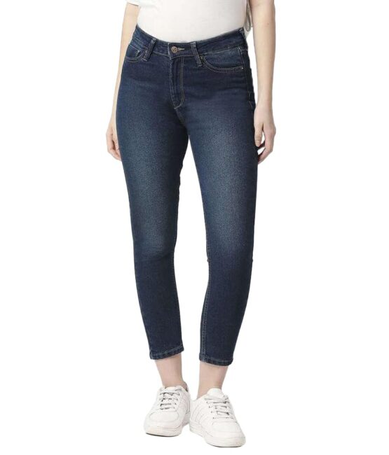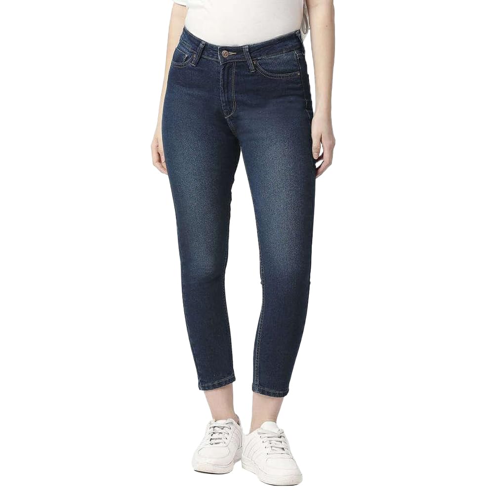 73 Fashion- Signature Brand Carrier- Stylized 5 Pocket Skinny Fit-Mid Rise Ankle Length Jeans, Dark Used Lightly Faded Denim With A Classic Clean Look & Zip Fly With 5 Belt Loops