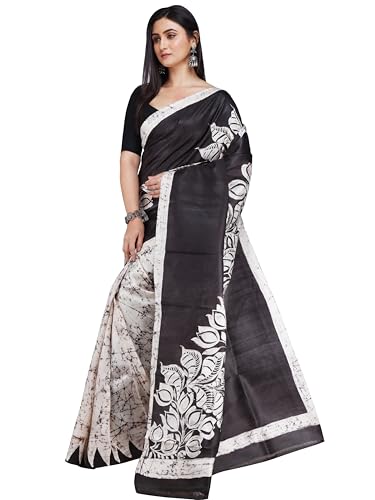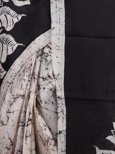 - Pure murshidabad silk batik printed saree with running unstitched blouse piece