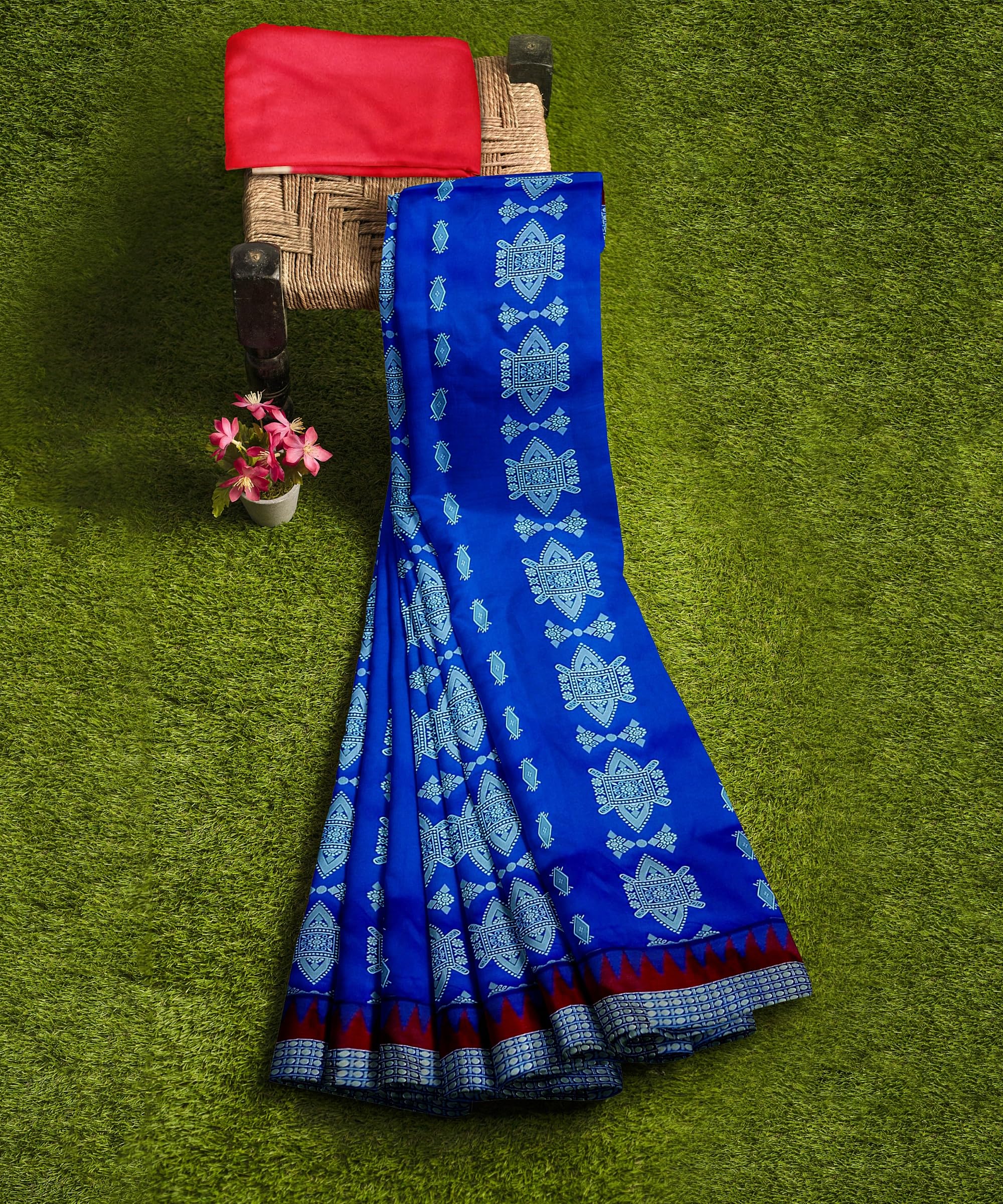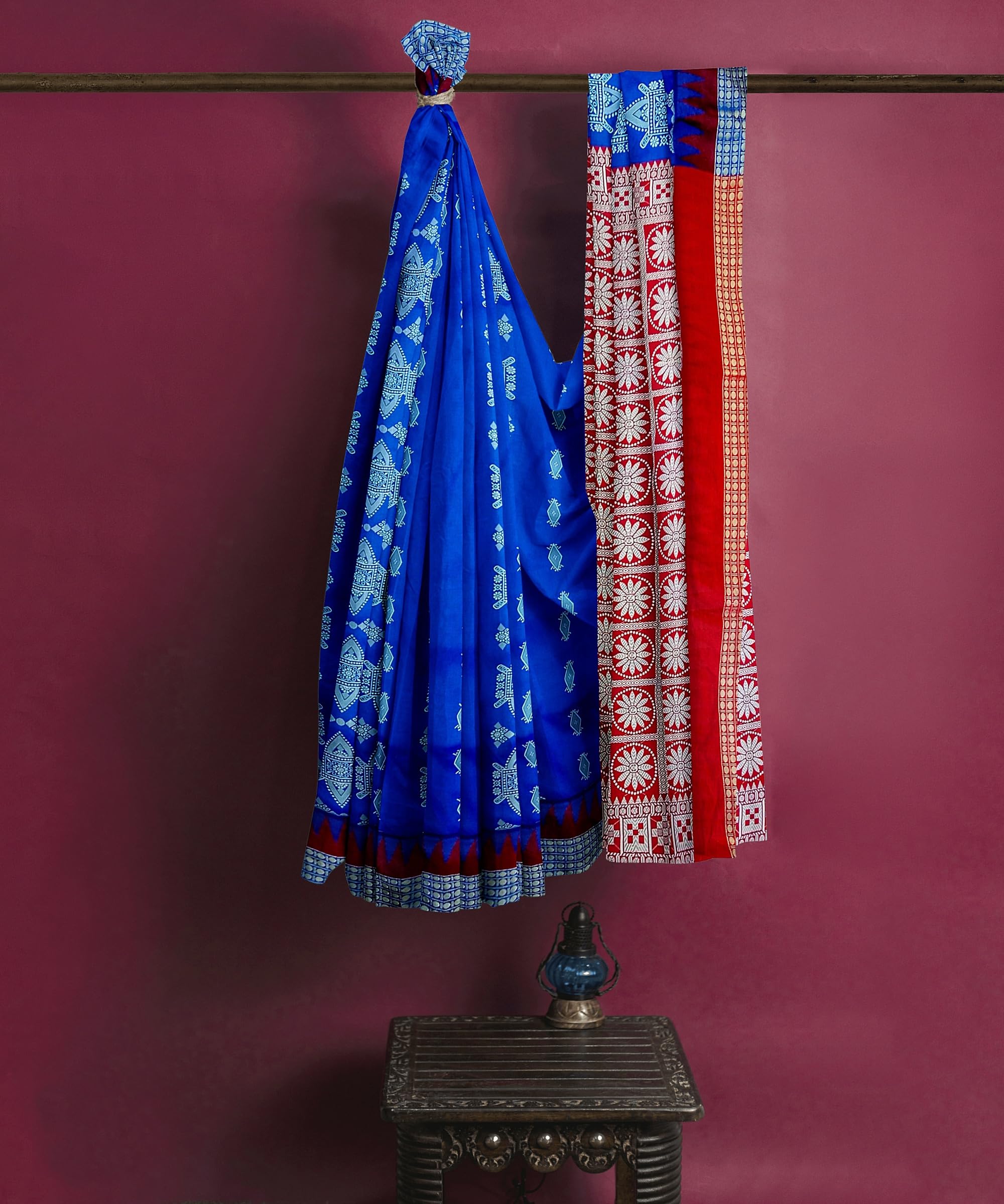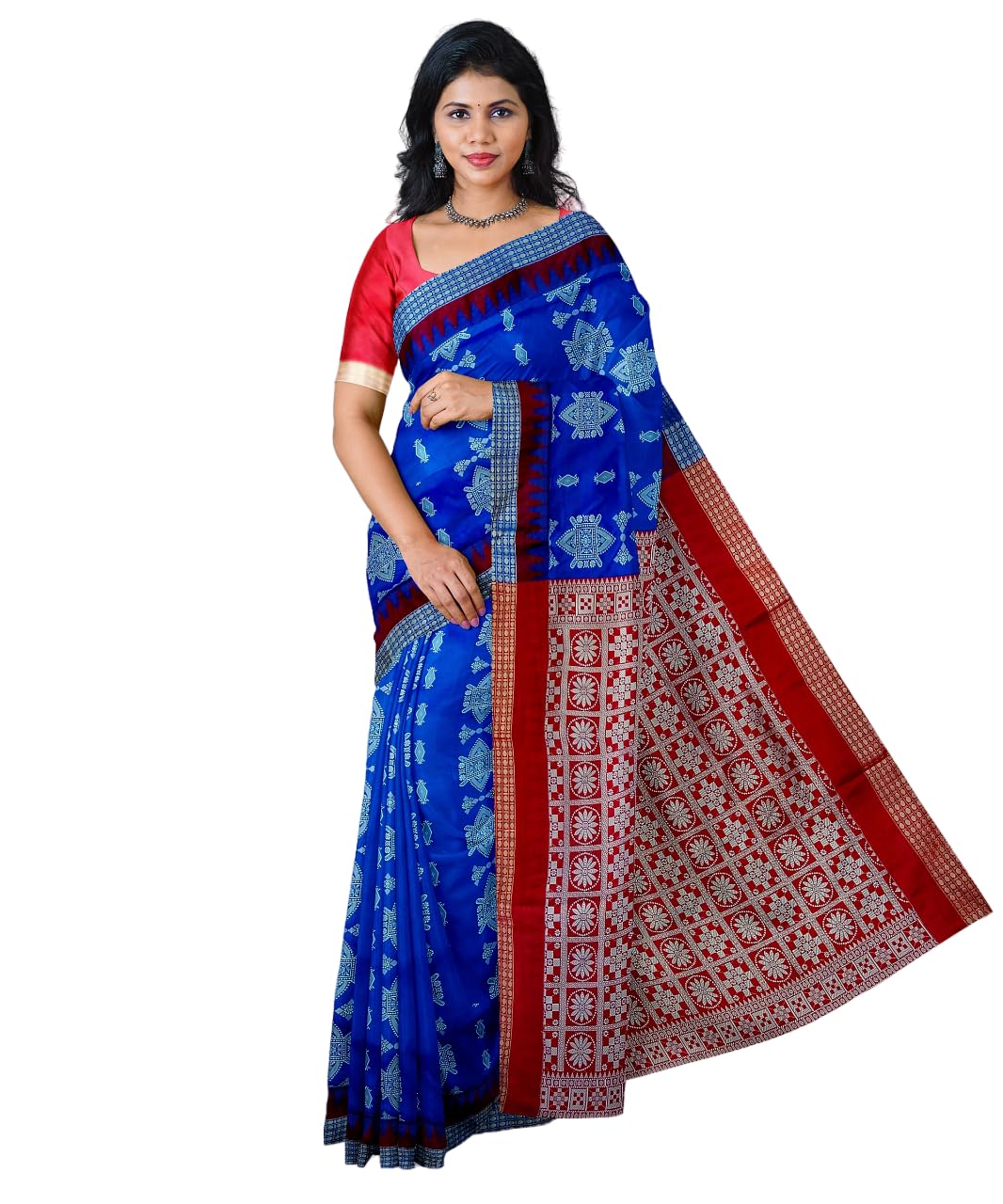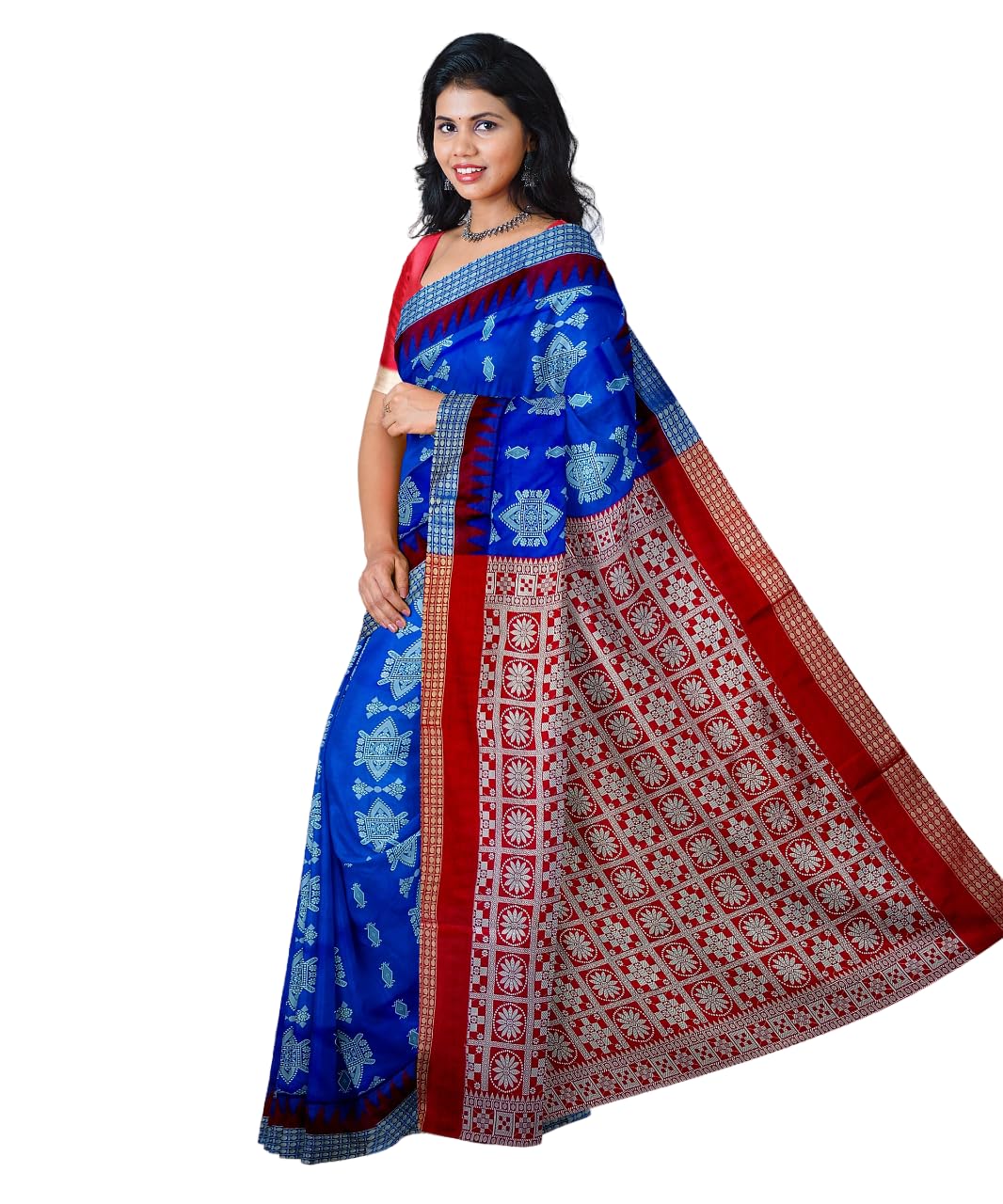 - Look here Traditional Sambhalpuri Royal Blue Color Saree
